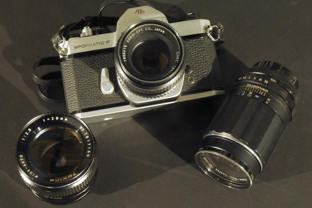 De eerste spiegelreflex camera die in 1973 in huis kwam.